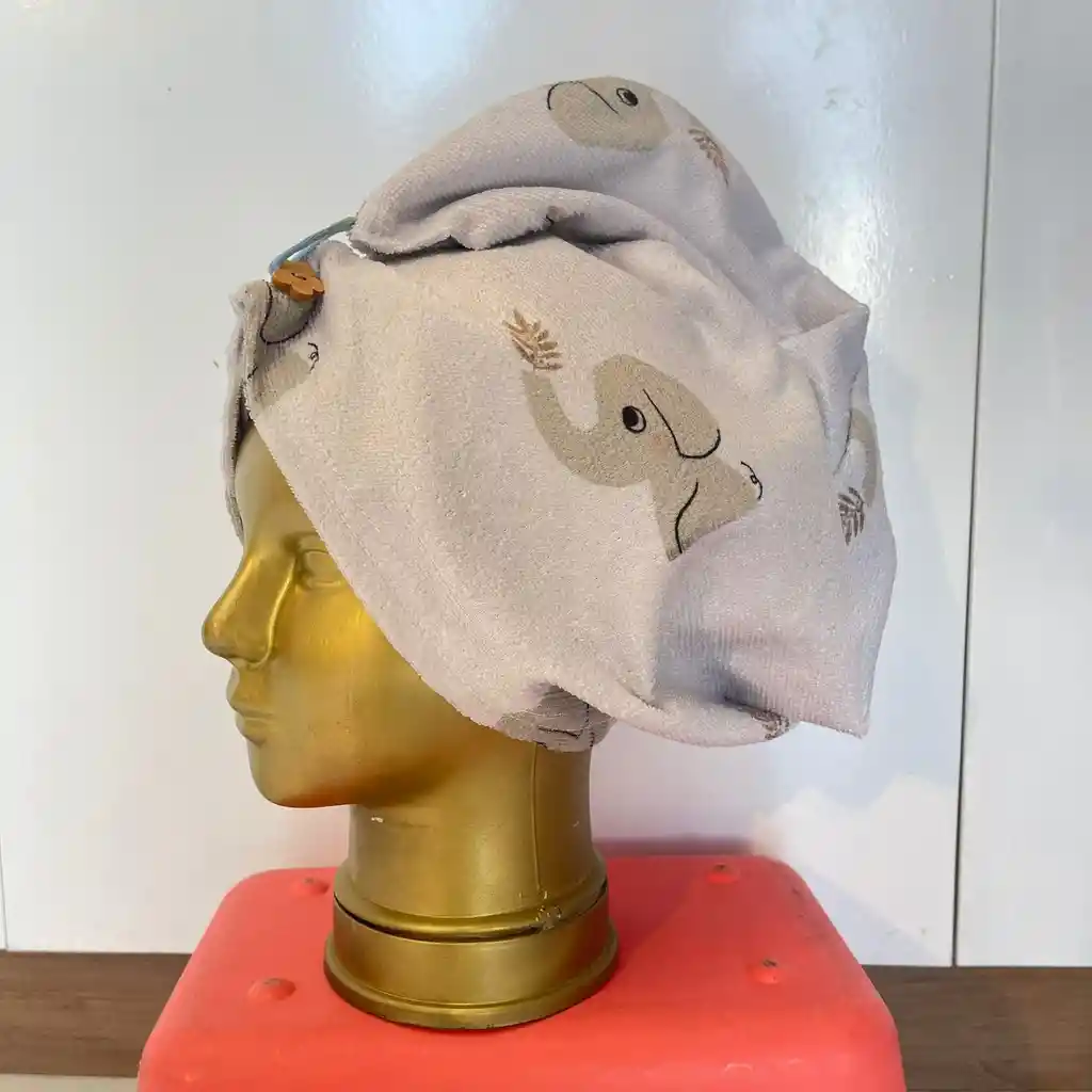 Toalla de microfibra para cabello, grande con botón y cuerdita para amarrar. Estampado Elefantes. Diseño y confección por nuestra marca Palm On Tenemos más diseños disponibles aquí en la tienda.