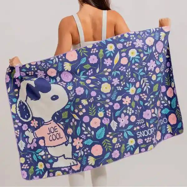 Toalla de microfibra inspirado en nuestra colección Snoopy x Vintro: In Bloom. Ideal para viajar. Alta absorción y secado rápido, tiene un elástico que le permite ser empacada de manera compacta en forma de rollo que permite llevarse fácilmente sin ocupar mucho espacio. Medidas: 64 cm ancho x 1.16 mt alto