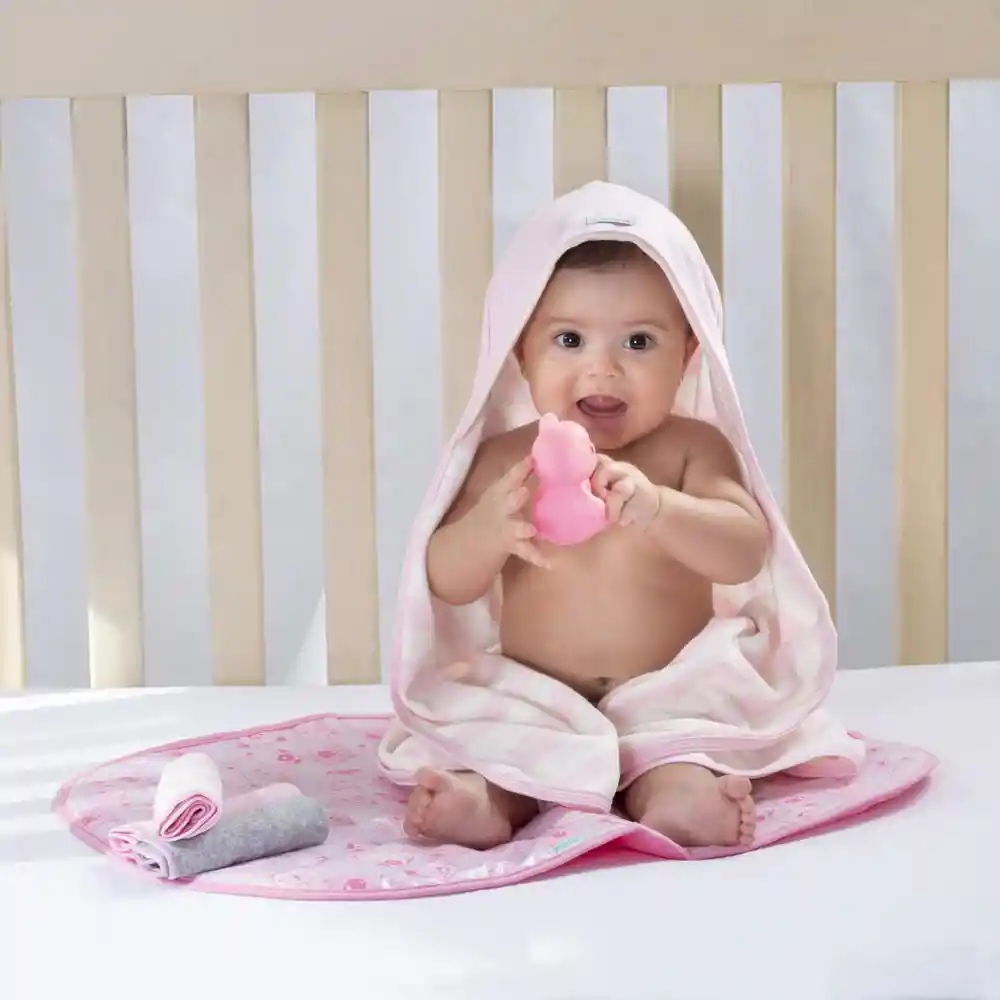 Toalla en Terry Preteñida Con Capucha y Sesgo. Recomendada Para la Delicada Piel de Los Recién Nacidos. Tejido Suave y Absorbente.