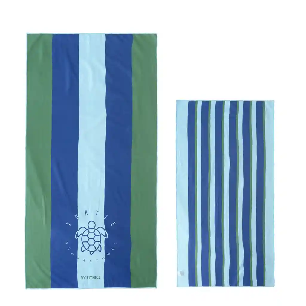 "¡Vive el verano a todo color con tus toallas de playa de microfibra Turtle, by Fitnics! - Súper absorbente y de secado rápido: fabricada con microfibra suave, esta toalla absorbe más que las toallas normales, pesando mucho menos y secándose hasta 3 veces más rápido que una toalla de algodón. - Tamaño perfecto para acostarse cómodamente: mide 80 cm x 160 cm. - Cuenta con 2 diseños: cada toalla trae un diseño distinto en cada cara. - Su material permite que no se le pegue la arena con facilidad, basta con una pequeña sacudida y ya estará lista para guardar. - Incluye compacto bolso para transportarla o almacenar. - Al doblarla y guardarla en su bolso queda compacta y usa poco espacio en tu mochila o maleta, ya sea para paseos, gimnasio, viajes, etc. - Hermosos diseños veraniegos y coloridos, ideales para toda la familia. - Toalla pesa menos de 300 grs, por lo que es perfecta para llevar a campamentos, viajes o cualquier aventura que requiera el menos peso posible. ----------------------------------------------------------------------- FICHA TÉCNICA - Toalla de Playa Fitnics - Material: Microfibra (85% poliéster y15% polyamide) - Toallas reversibles, incluyen 1 diseño distinto en cada cara. - 4 diseños disponibles a elegir - Lavar solo con agua fría, sin agentes blanqueadores. - Microfibra de textura suave al tacto. - Secara al aire libre (no en secadora). - Incluye: Bolso para transportar/guardar - Liviana y súper absorbente - Medidas: 160 x 80 cm - Peso: 300 gr ----------------------------------------------------------------------- QUE VIENE EN LA CAJA - 1 Toalla de playa con diseño Turtle by Fitnics - 1 Bolso para transportar/guardar. **FITNICS® es distribuida en Colombia y Sudamérica exclusivamente por Builder Commerce SAS** ----------------------------------------------------------------------- PREGUNTAS FRECUENTES: ¿El precio indicado incluye IVA? Si, si incluye IVA el precio publicado. ¿Los productos tienen garantía? Sí. Todos nuestros productos cuentan con 6 meses de garantía limitada contra defectos de fabricación.