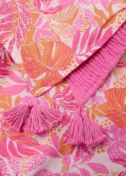Detalle de Pompones Estampado de Hojas Tejido 100% Algodón Tejido Toalla - 87047895_74.