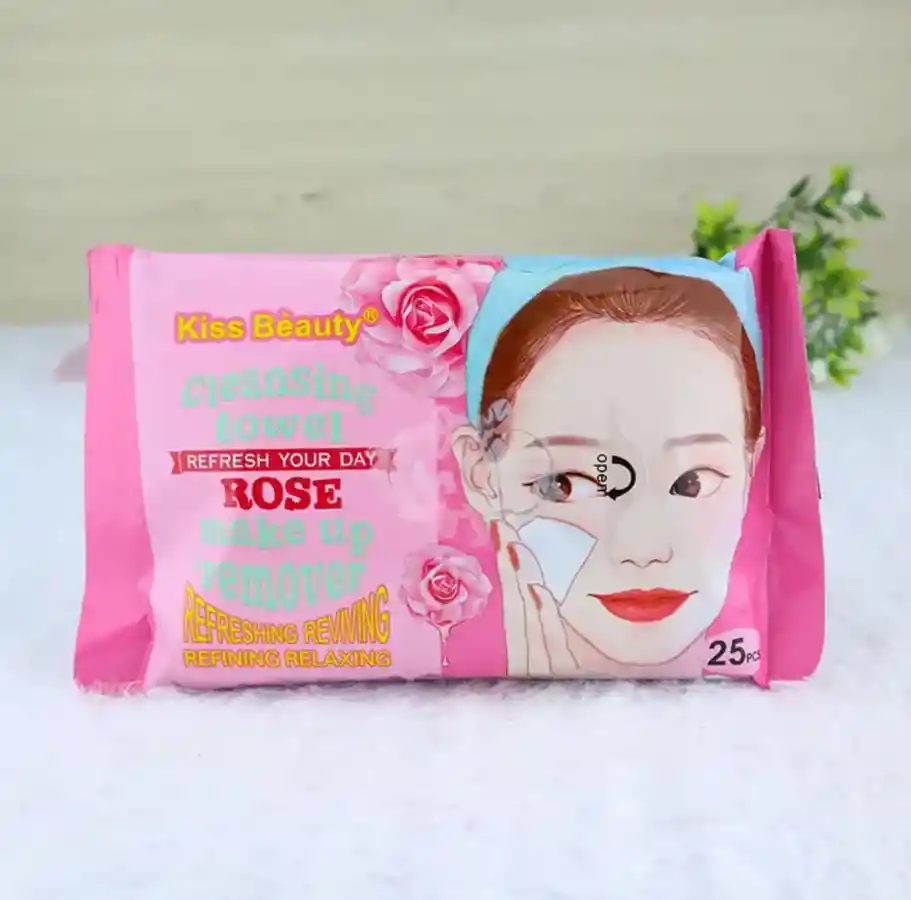 Toallitas desmaquillantes para el rostro, con extractos de rosas. 25 und