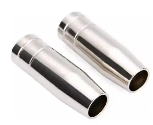 Tobera o Buza para 15AK MIG antorcha MIG/MAG. Consumible estándar para todo tipo de antorcha de soldadura MB 15AK MIG de alta calidad para antorcha de soldadura de MIG/MAG tipo Europeo. Es compatible con todo tipo de MB 15AK MIG soldadura antorcha. Material: Latón y níquel plateado. Longitud: 53mm (2.09). ID de agujero delantero: 12mm (0.47).