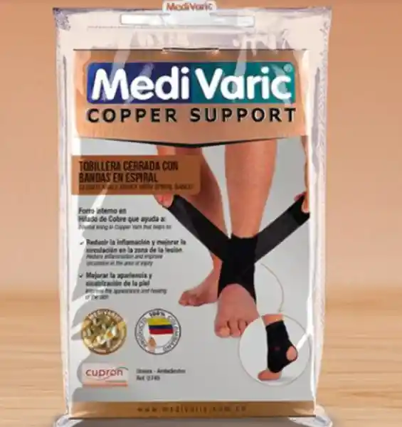 Esta tobillera cerrada cuenta con bandas laterales en espiral que brindan estabilidad y soporte al tobillo, evitando la inversión y eversión. Además, su forro interno en hilado de cobre reduce la inflamación, mejora la circulación y ayuda a mejorar la apariencia y cicatrización de la piel.