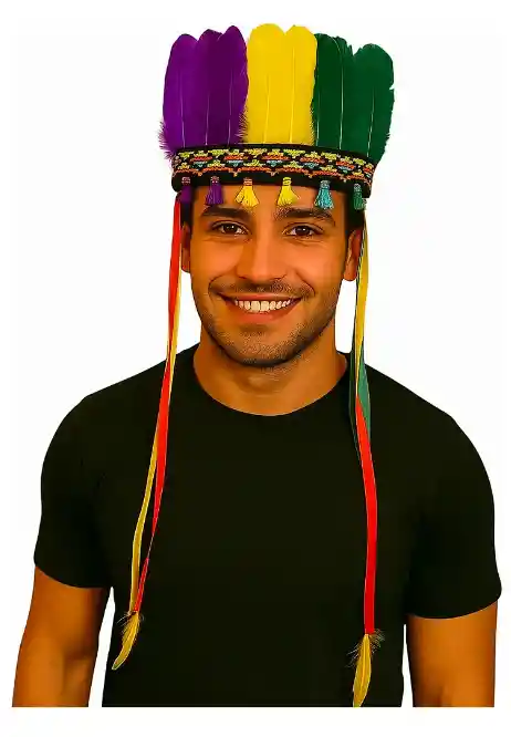 Increíble penacho grande de Indígena con plumas realistas para disfraz de Chaman. ¡Es liviano y tiene plumas sintéticas idénticas a las de verdad! Medidas: 60cm de ancho x 78cm de alto Tiene una banda elástica en la parte posterior para sujetar a la cabeza. Tenemos más accesorios para complementar tus disfraces. ¿Preguntas? Escríbenos, te responderemos en el menor tiempo posible,