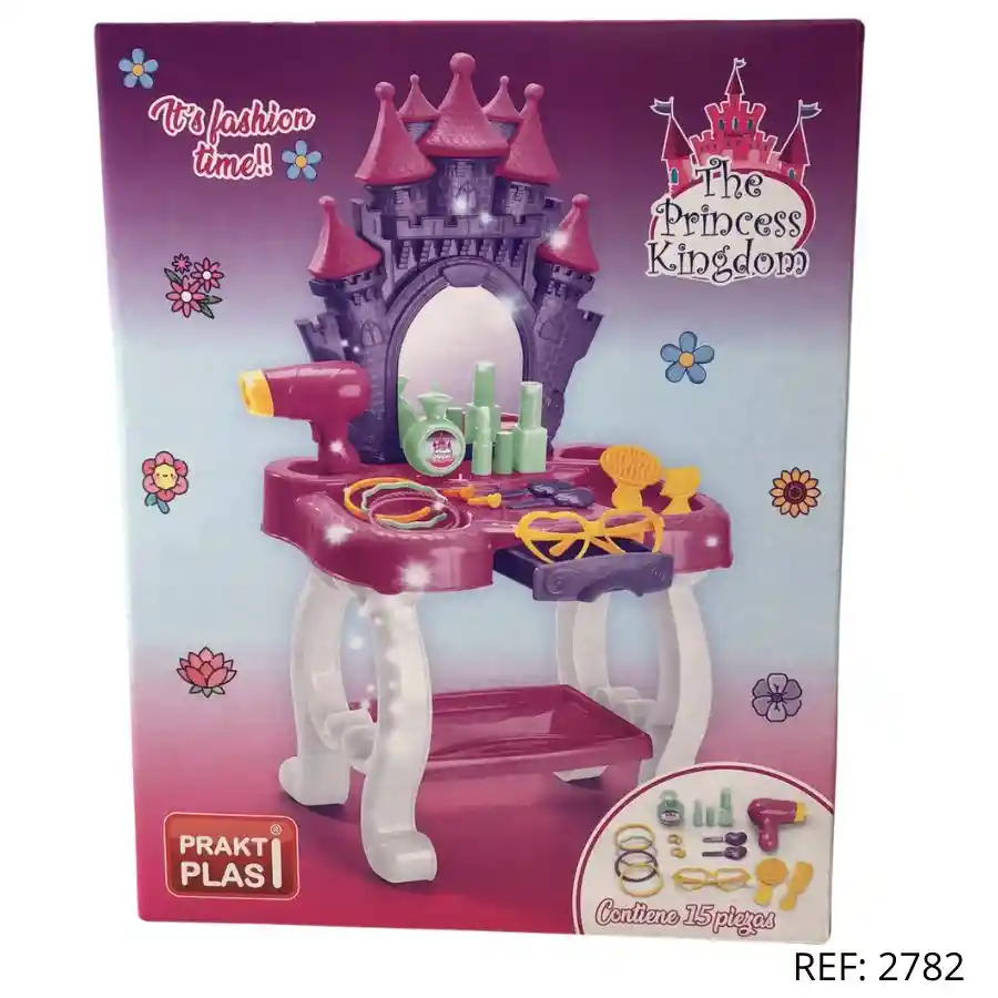 Tocador de princesa con espejo y accesorios. Incluye 15 piezas para jugar y peinar. ¡Diversión mágica garantizada!