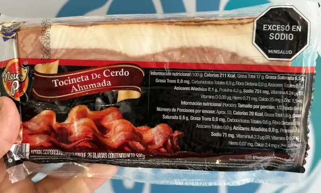 Tocineta de cerdo ahumada x 500 g. 26 tajadas