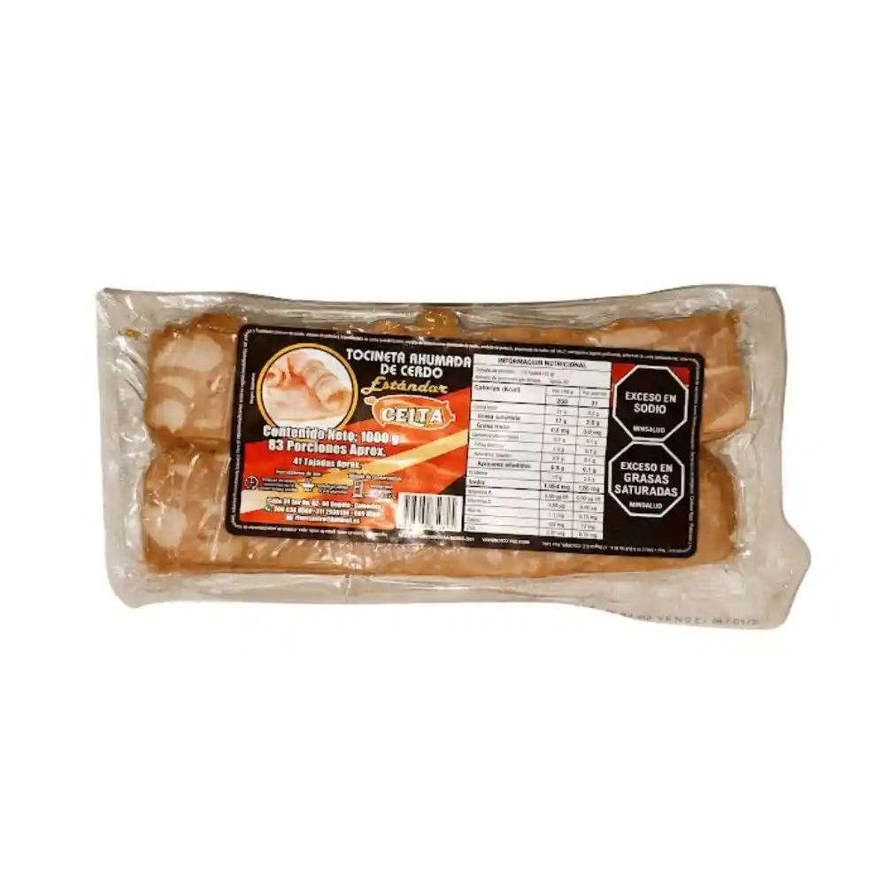 Tocineta Lineal Celta 1000g. Ideal para recetas, desayunos y parrillas. Corte uniforme, sabor intenso y textura crujiente. ¡Fácil de preparar!