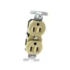Toma corriente doble con polo a tierra beige de incrustar a la pared