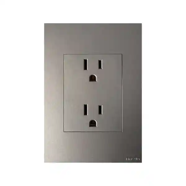Toma Corriente Doble con Polo a Tierra Silver Luxury Mercury (Plateado Oscuro) Corriente Nominal: 15A/20A Tensión Nominal: 125/250VAC Frecuencia: 50/60HZ