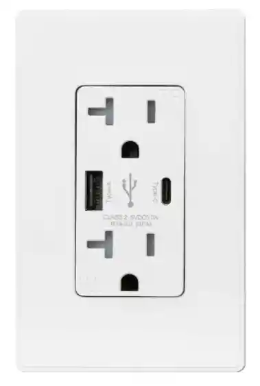 Toma de pared, tipo A y tipo C, puertos USB de 4.2 amperios con chip inteligente, enchufe de receptáculo dúplex de 20 amperios... Color: Blanco