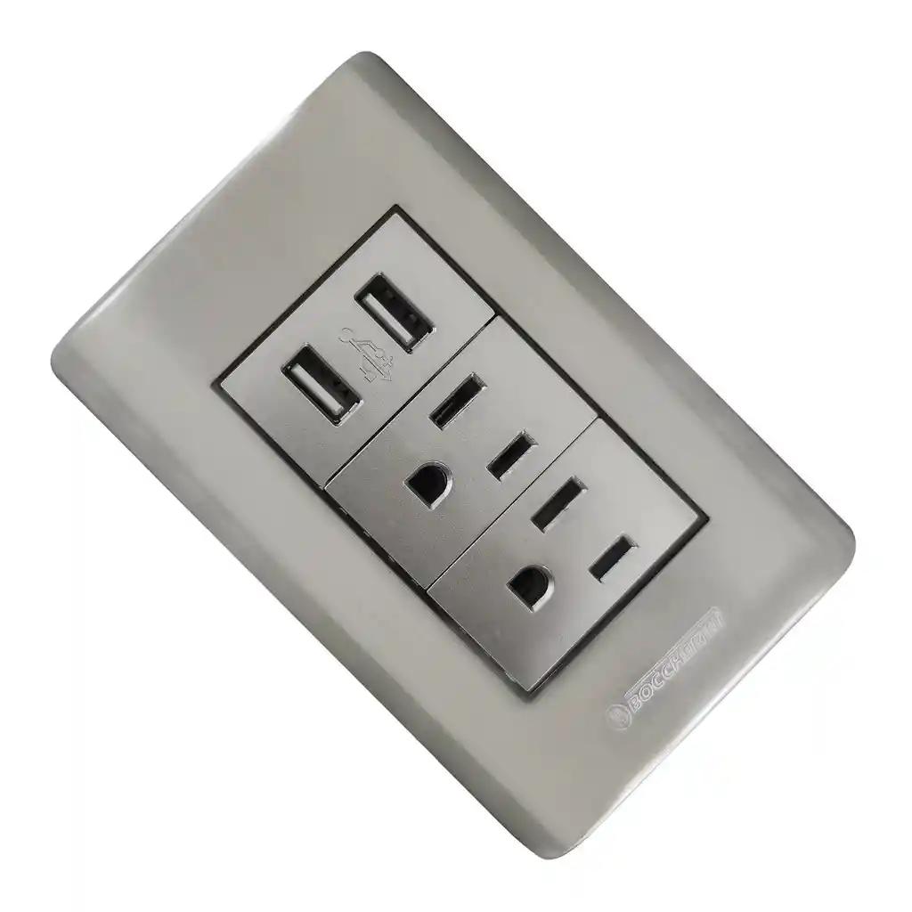 CON LA TOMACORRIENTE DOBLE CON POLO A TIERRA (2P+T) + TOMA DOBLE USB 15A 110V-250V, 5V 2,1A COLOR PLATEADO, RECARGA TU VIVIENDA CON LA MEJOR CALIDAD EN TOMAS ELECTRICAS ADEMAS DE PODER DARLE UN TOQUE ESPECIAL AL DISEÑO DE TU HOGAR. ¡ADQUIERELA AHORA!