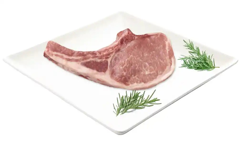 El Tomahawk Ibérico es un corte Premium de cerdo, imponente y jugoso, que corresponde al lomo alto con el hueso de la costilla largo, simulando un hacha.