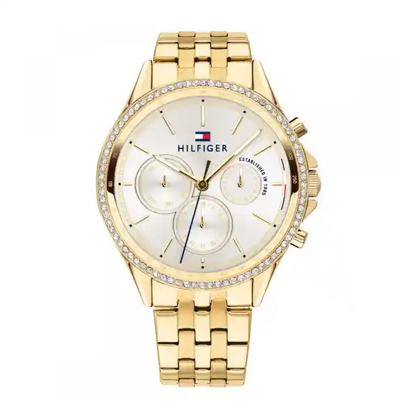 Reloj Tommy Hilfiger Genero:Mujer,Material:Acero Inoxidable,Modelo:1781977,Color pulso:Dorado,Material Pulso:Acero Inoxidable,Colección:1781977,Tono de caja:Dorado,Material de caja:Acero Inoxidable,Color tablero:Plateado,Material cristal:Mineral,Ancho de banda:20 mm,Largo:190mm,Resistencia al agua:30 mts,Size caja:38 mm,Tipo de reloj:Análogo,Forma:Circular,Tipo de movimiento:Cuarzo