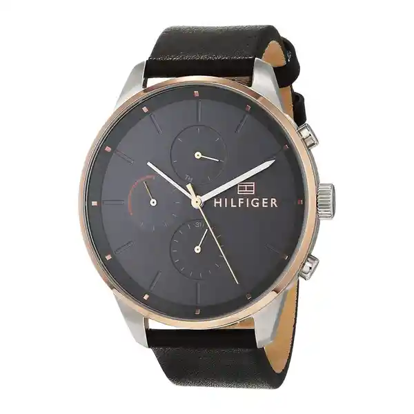 Reloj Tommy Hilfiger Genero:Hombre,Material:Cuero,Modelo:Chase,Color pulso:Negro,Material Pulso:Cuero,Colección:Chase,Tono de caja:Plateado,Material de caja:Acero Inoxidable,Color tablero:Negro,Material cristal:Mineral,Ancho de banda:20 mm,Largo:160 - 210mm,Resistencia al agua:50 mts,Size caja:44 mm,Tipo de reloj:Análogo,Forma:Circular,Tipo de movimiento:Cuarzo