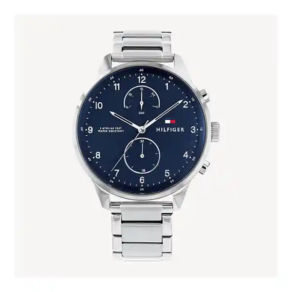 Reloj Tommy Hilfiger Genero:Hombre,Material:Acero Inoxidable,Modelo:Chase,Color pulso:Plateado,Material Pulso:Acero Inoxidable,Colección:Chase,Tono de caja:Plateado,Material de caja:Acero Inoxidable,Color tablero:Azul,Material cristal:Mineral,Resistencia al agua:30 mts,Size caja:44 mm,Tipo de reloj:0,Forma:Circular,Tipo de movimiento:Cuarzo