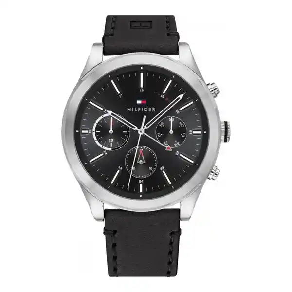 Reloj Tommy Hilfiger Genero:Hombre,Material:Cuero,Modelo:1791740,Color pulso:Negro,Material Pulso:Cuero,Colección:1791740,Tono de caja:Plateado,Material de caja:Acero Inoxidable,Color tablero:Negro,Material cristal:Mineral,Ancho de banda:21 mm,Largo:220 mm,Resistencia al agua:50 mts,Size caja:46 mm,Tipo de reloj:Análogo,Forma:Circular,Tipo de movimiento:Cuarzo
