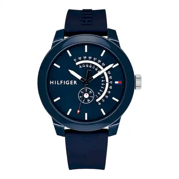 Reloj Tommy Denim 1791482 Para Hombre, Tamaño de la Caja 44 (mm) de Resina, Tamaño Del Pulso 160 - 210 (mm) de Silicona Color Azul, Resistencia al Agua, Hasta 50 m