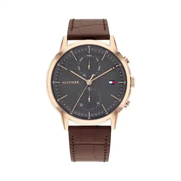 Reloj Tommy Hilfiger 1710435 Hombre Marrón Material: Cuero Caja: Rosa Acero Inoxidable Tablero: Gris Cristal: Mineral Ancho: 22 Largo: 220 Resistencia al Agua: 50 Calendario: Si Movimiento: Cuarzo Cierre: Hebilla