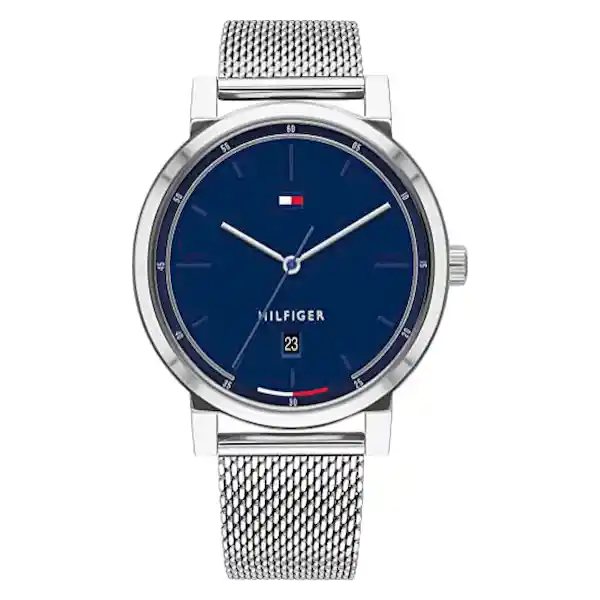 Reloj Tommy Hilfiger 1791732 Hombre Plateado Material: Acero Inoxidable Caja: Plateado Acero Inoxidable Tablero: Azul Cristal: Mineral Ancho: 24 Largo: 210 Resistencia al Agua: 50 Calendario: Si Movimiento: Cuarzo Cierre: Desplegable