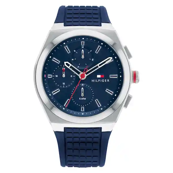 Reloj Tommy Hilfiger TMY1791899 Hombre Azul Material: Silicona Caja: Plateado Acero Inoxidable Tablero: Azul Cristal: Mineral Ancho: 210 Largo: 26 Resistencia al Agua: 50 Metros Calendario: Si Movimiento: Cuarzo Cierre: Hebilla
