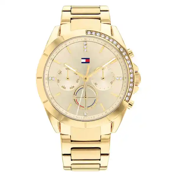 Reloj Tommy Hilfiger TMY1782385 Mujer 0 Material: Acero Inoxidable Caja: Dorado Acero Inoxidable Tablero: Oro Cristal: Mineral Ancho: 18 mm Largo: 200 mm Resistencia al Agua: 30 Metros Calendario: Si Movimiento: Cuarzo Cierre: Desplegable