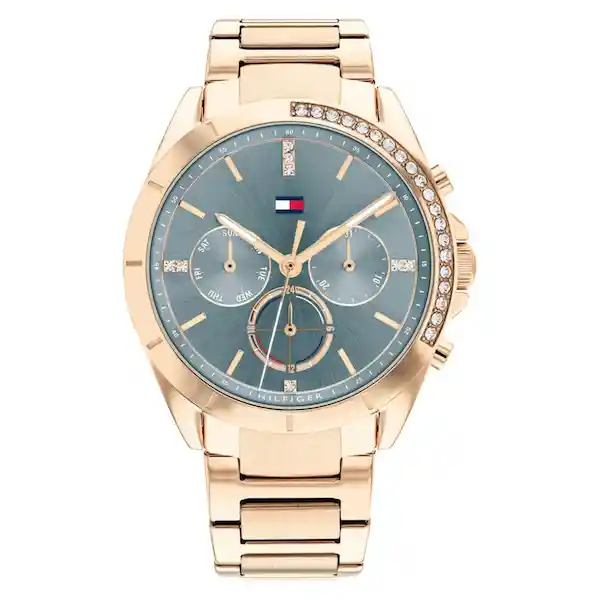 Reloj Tommy Hilfiger TMY1782386 Mujer 0 Material: Acero Inoxidable Caja: Oro Rosa Acero Inoxidable Tablero: Verde Cristal: Mineral Ancho: 20 mm Largo: 210 mm Resistencia al Agua: 50 Metros Calendario: Si Movimiento: Cuarzo Cierre: Desplegable
