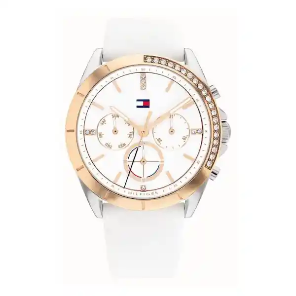 Reloj Tommy Hilfiger TMY1782388 Mujer Blanco Material: Silicona Caja: Dorado Acero Inoxidable Tablero: Blanco Cristal: Mineral Ancho: 210 Largo: 18 Resistencia al Agua: 50 Calendario: Si Movimiento: Cuarzo Cierre: Hebilla