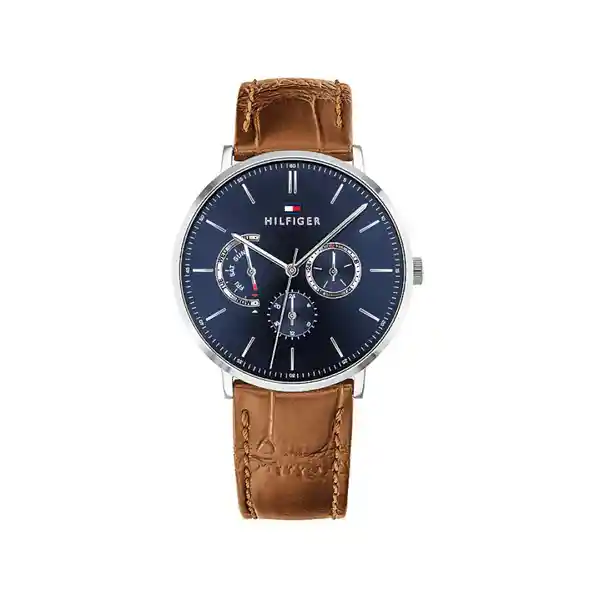 Reloj Tommy Hilfiger Genero:Hombre,Material:Cuero,Modelo:Dane,Color pulso:Marrón,Material Pulso:Cuero,Colección:Dane,Tono de caja:Plateado,Material de caja:Acero Inoxidable,Color tablero:Azul,Material cristal:Mineral,Ancho de banda:20 mm,Largo:160 -220mm,Resistencia al agua:30 mts,Size caja:42 mm,Tipo de reloj:Analogo,Forma:Circular,Tipo de movimiento:Cuarzo
