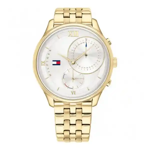 Reloj Tommy Hilfiger Genero:Mujer,Material:Acero Inoxidable,Modelo:Meg,Color pulso:Dorado,Material Pulso:Acero Inoxidable,Colección:Meg,Tono de caja:Dorado,Material de caja:Acero Inoxidable,Color tablero:Blanco,Material cristal:Mineral,Ancho de banda:18 mm,Largo:210mm,Resistencia al agua:30 mts,Size caja:38 mm,Tipo de reloj:Análogo,Forma:Circular,Tipo de movimiento:Cuarzo