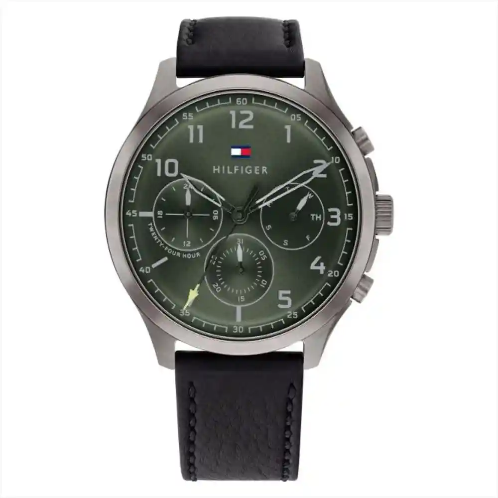 Reloj Tommy Hilfiger Tmy1791856 Para Hombre; Medida de la Caja 48 (mm) de Acero Inoxidable; Medida Del Pulso 24 (mm) de Cuero; Color Negro; Pulso de 24 (mm); Resistencia al Agua Hasta 30 (Metros)