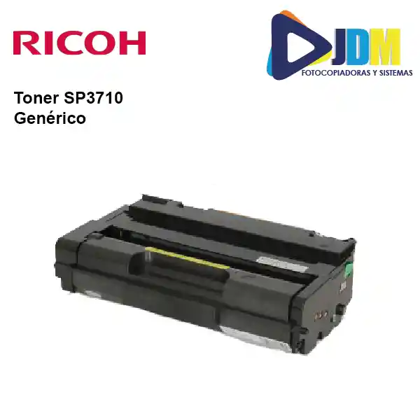 ARTICULO GENÉRICODescripciónTONER RICOH SP 3710 CARTUCHO GENÉRICOPara uso en copiadoras Ricoh SP 3710CARACTERÍSTICASCartucho “todo en uno” 7.000 páginasSP 3710Tóner de alta calidad compatible con la impresora multifuncional ricoh sp3710Rendimiento de 7 kConfiguración EscritorioTecnología LáserColor y B/N Blanco y negroProceso de impresión - Impresión electrofotográficaElemento de escaneo Haz de láserTipo de tóner Desarrollo de tóner seco de un componenteTóner (larga duración)COLOR: NegroPRESENTACIÓN: CartuchoCOMPATIBLE CON LOS SIGUIENTES EQUIPOS: Ricoh Aficio MP 301SPFSomos Fotocopiadoras y Sistemas JDM, una empresa que ofrece la venta de Fotocopiadoras, Impresoras e insumos.Déjanos asesorarte en cualquier tipo de impresora y fotocopiadora de la marca Ricoh, Brother, Toshiba, Canon, Epson y HPSi no está seguro del tóner o no sabe si la tinta es compatible con su impresora, haga preguntas antes de la compraOfrecemos calidad en nuestros servicio!