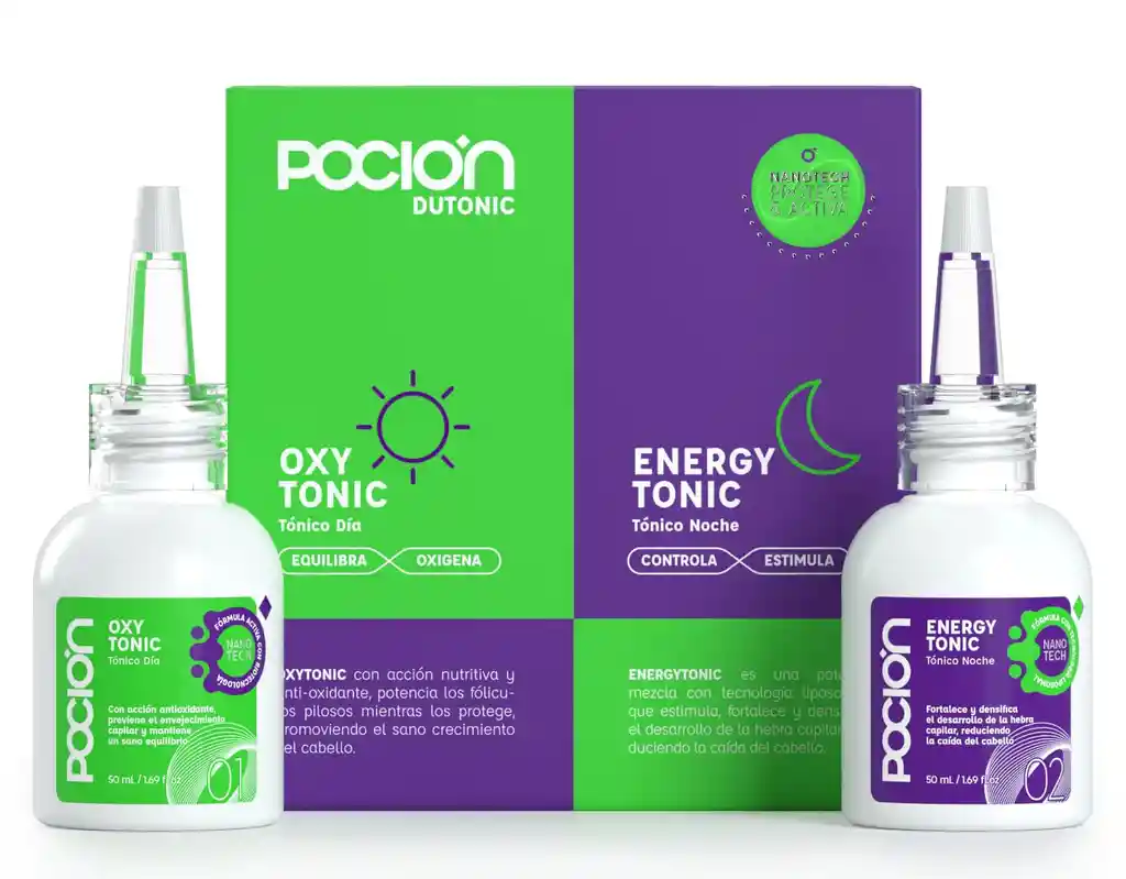 Dutonic es un tratamiento con nanotecnología liposomal, capaz de transportar y liberar eficientemente sus ingredientes en la zona afectada. Sus activos y extractos naturales brindan cohesión y fuerza en el desarrollo de las hebras capilares. Su ritual de aplicación día y noche crean la rutina perfecta para dar solución a la caída del cabello y al mismo tiempo acelera el proceso de crecimiento del cabello Dutonic densifica las hebras capilares mediante una correcta oxigenación sanguínea, a la vez que estimula la microcirculación en los folículos pilosos y, acelera el nacimiento de nuevos cabellos, extendiendo la fase aná