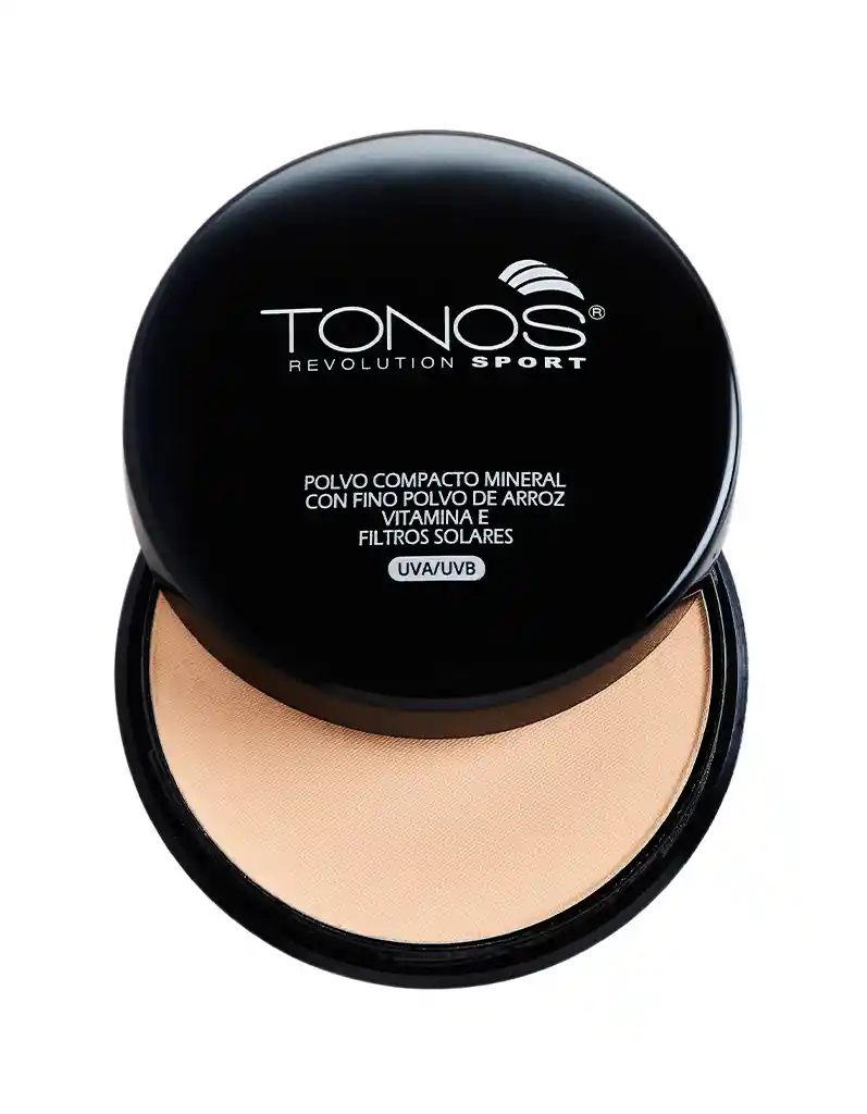 Polvo tonos sport compacto con fino polvo de arroz, contiene filtro solar y vitamina e