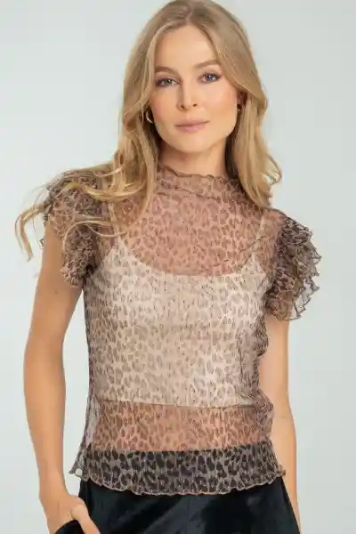 En Mesh Estampado Escote Alto Manga Corta Mini Boleros.