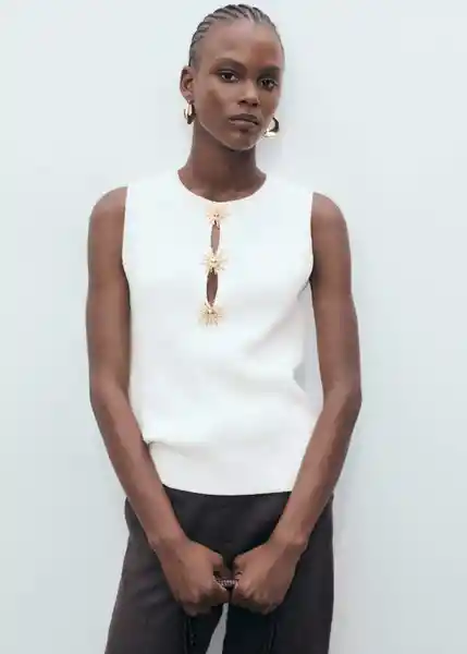 Botones Efecto Joya Cuello Redondo Detalle de Soles Con Abertura en el Escote Diseño Recto Sin Cierre Sin Mangas Tejido de Punto Tejido Mezcla de Algodón Tirantes Anchos - 87089065_05.