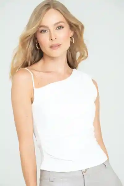 En Tejido de Punto Penélope Escote Asimétrico Hombro Drapeado y Prenses en Costado Silueta Ajustada.
