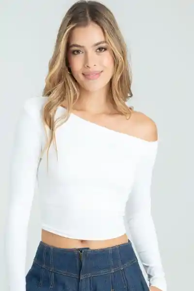 Top Asimétrico Manga Larga Color Blanco Crudo Talla M Ragged