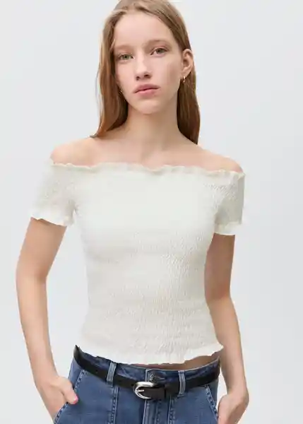 100% Algodón Hombros Descubiertos Manga Corta Tejido Fruncido - 87043274_02.