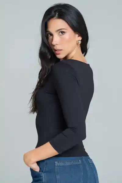 En Tejido de Punto Fonfo Entero Escote Tipo Barco Manga 3/4 Silueta Ajustada.