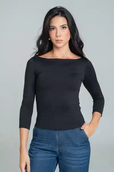 En Tejido de Punto Fonfo Entero Escote Tipo Barco Manga 3/4 Silueta Ajustada.