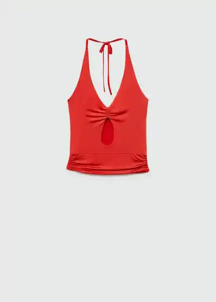 Cierre de Lazo en el Cuello, Cuello Halter, Detalle de Abertura, Detalles Fruncidos, Diseño Entallado, la Modelo Mide 180 cm y Lleva Una S, Sin Mangas, Tejido de Tul, Tejido Fluido, Tirantes Finos - 77070625_70.