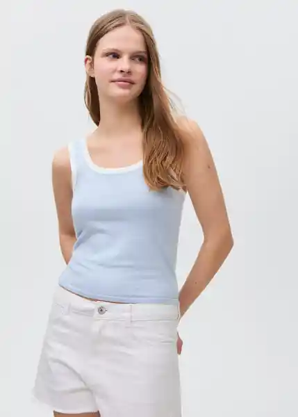 Cuello Redondo Diseño Ajustable Diseño Corto Punto de Canalé Sin Mangas Terminaciones en Contraste - 87085726_50.