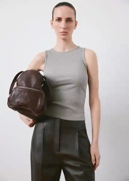 Cuello Redondo Diseño Entallado Diseño Recto Disponible Plus Sin Mangas Tejido de Canalé Tejido Mezcla de Algodón - 27065830_94.