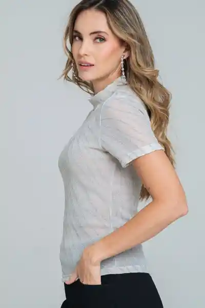En Tejido de Punto Malla Con Brillo Cuello Alto Manga Corta Silueta Ajustada.