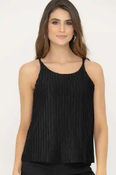 Tejido de Punto Lurex Plisado Cuello Halter Sisa Entrada Silueta Fluida Interno.