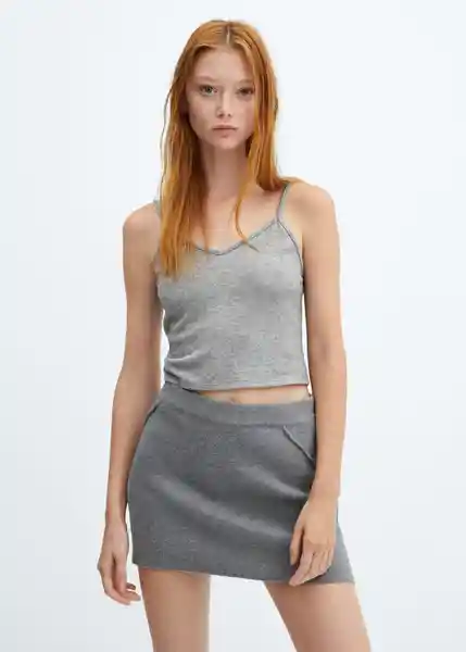 Cuello Pico Diseño Corto Diseño Entallado Sin Mangas Tejido de Punto Fino Tirantes Finos Total Look - 57037730_94.