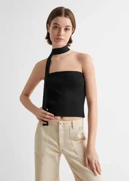 Acabado Brillante Cuello Recto Diseño Crop Diseño Recto Pañuelo en el Cuello Sin Cierre Sin Mangas Tejido de Punto Fino - 67084455_99.