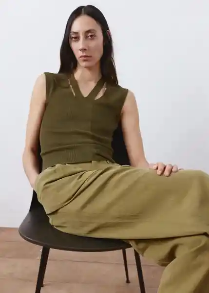 Cuello Combinado Diseño Entallado Escote de Pico Sin Cierre Sin Mangas Tejido de Punto Fino - 27075823_37.