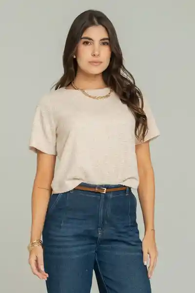 En Bucle Escote Redondo Con Abertura en Espalda y Botón Manga Corta.